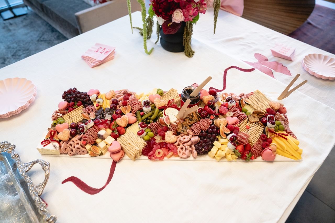 No birthday is complete without a spread worth celebrating, and Mykaela’s 25th pulled out all the stops. Guests were greeted with themed sugar cookies featuring bows, cherries, and everything pink. A lavish charcuterie board–overflowing with heart-shaped treats, fresh fruits, and artisanal cheeses–served as a perfect feast. Chick-fil-A nuggets and fries in custom fry containers added a tasty touch. As the night went on, the prosecco tower became the star of the show, inviting guests to toast the birthday girl in style. Mykaela’s prosecco bottle twinkled like a mini disco ball, adding a pop of sparkle to the celebration.